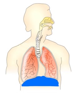 At the bottom of the chest cavity is a large, flat muscle known as the diaphragm.
