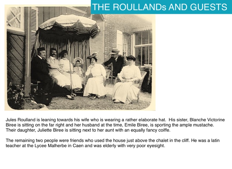 The remaining two people were friends who used the house just above the chalet in the cliff. He was a latin teacher at the Lycee Malherbe in Caen and was elderly with very poor eyesight.