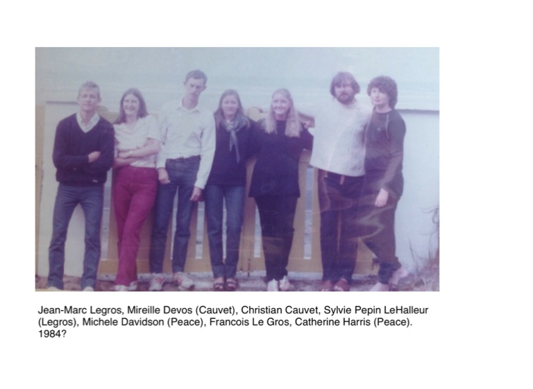 Jean-Marc Legros, Mireille Devos (Cauvet), Christian Cauvet, Sylvie Pepin LeHalleur (Legros), Michele Davidson (Peace), Francois Le Gros, Catherine Harris (Peace). 1984?
