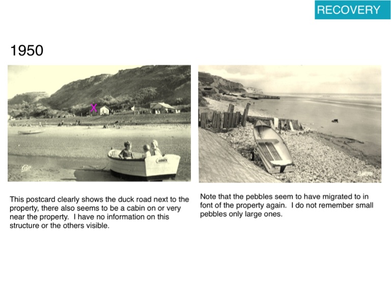 This postcard clearly shows the duck road next to the property, there also seems to be a cabin on or very near the property. I have no information on this structure or the others visible.