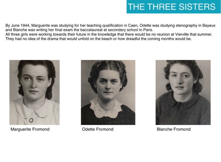 By June 1944, Marguerite was studying for her teaching qualification in Caen, Odette was studying stenography in Bayeux and Blanche was writing her final exam the baccalaureat at secondary school in Paris.