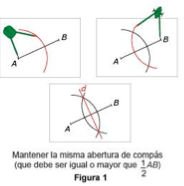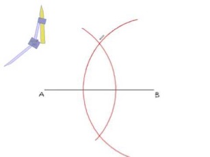 1°) Hacemos centro alternativamente en los extremos A y B y trazamos dos arcos del mismo radio.