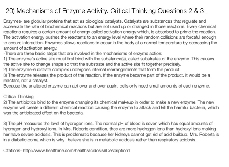 20) Mechanisms of Enzyme Activity. Critical Thinking Questions 2 & 3.