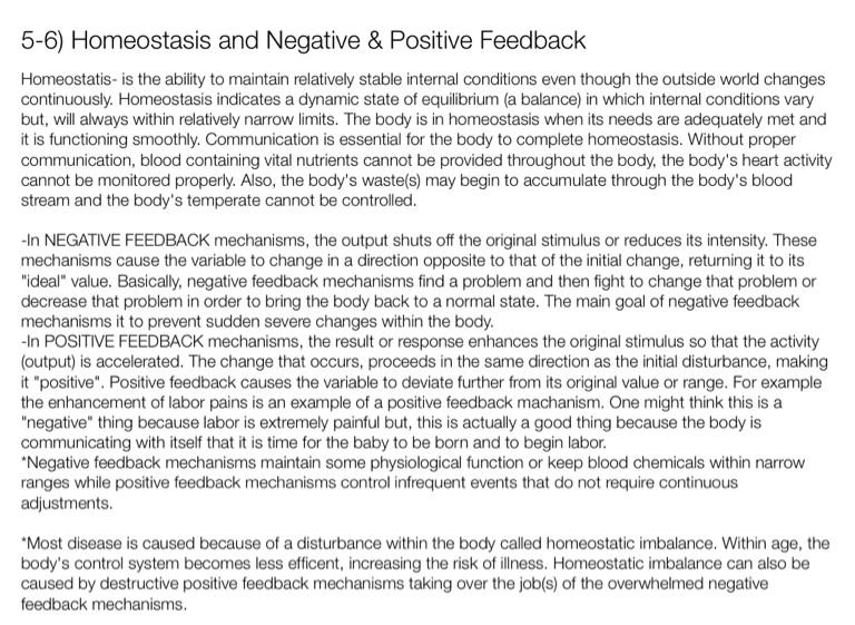 5-6) Homeostasis and Negative & Positive Feedback