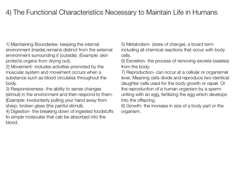 4) The Functional Characteristics Necessary to Maintain Life in Humans