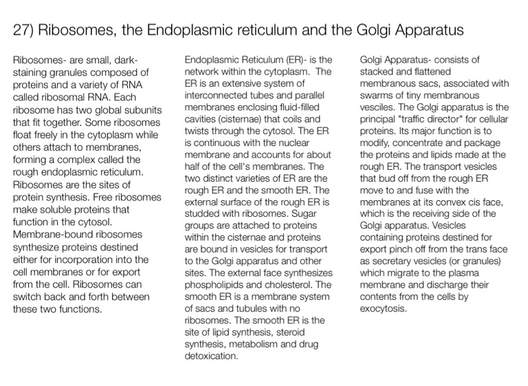 27) Ribosomes, the Endoplasmic reticulum and the Golgi Apparatus