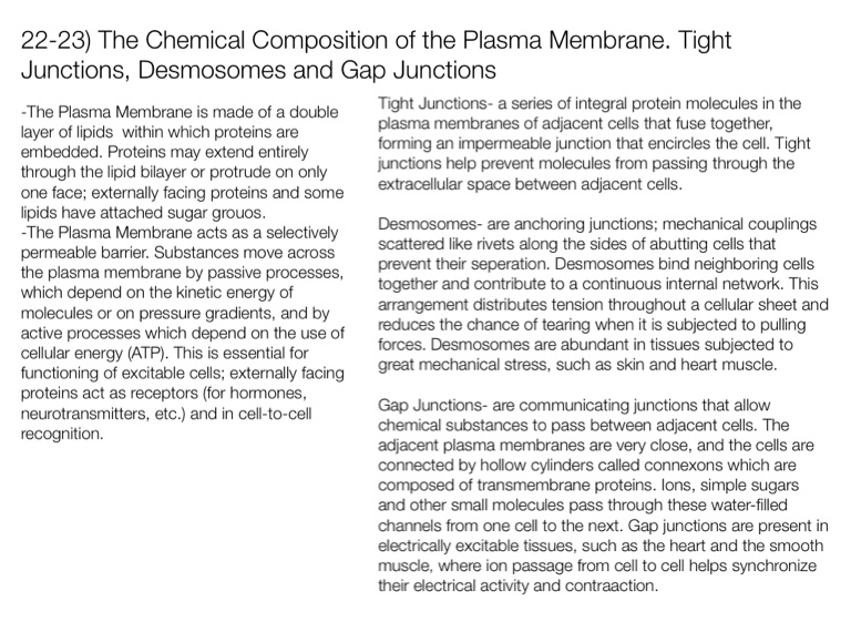 22-23) The Chemical Composition of the Plasma Membrane. Tight Junctions, Desmosomes and Gap Junctions