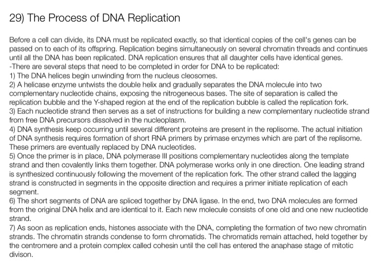 -There are several steps that need to be completed in order for DNA to be replicated: