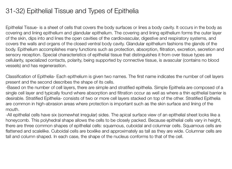 31-32) Epithelial Tissue and Types of Epithelia