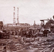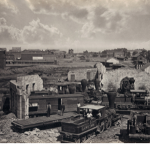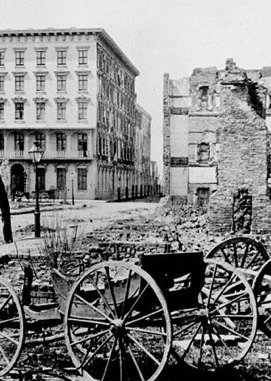 The South was hardest hit during the Civil War, Returning soldiers found devastated cities and farmlands, the railroads in the South had been destroyed, Farms and plantations were destroyed, and many southern cities were burned to the ground such as Atlanta, Georgia and Richmond, Virginia. The southern financial system was also ruined, After the war the Confederate money was worthless.