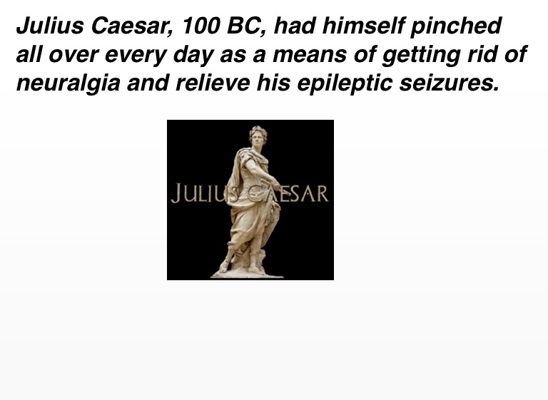 Julius Caesar, 100 BC, had himself pinched all over every day as a means of getting rid of neuralgia and relieve his epileptic seizures.