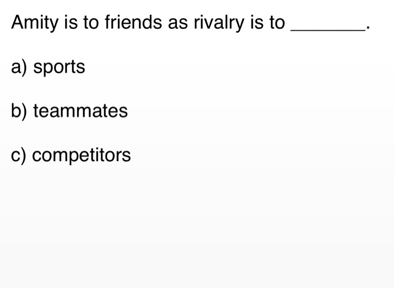 Amity is to friends as rivalry is to _______.