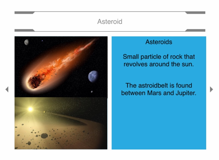Small particle of rock that revolves around the sun.