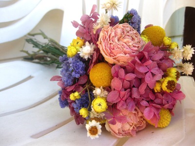 A bunch of flowers(most of the time different) usually rapped in ribbon.