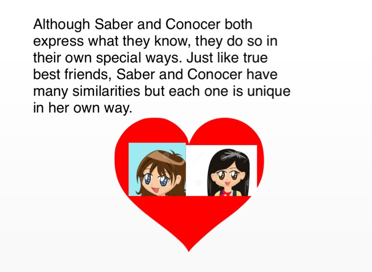 Although Saber and Conocer both express what they know, they do so in their own special ways. Just like true best friends, Saber and Conocer have many similarities but each one is unique in her own way.