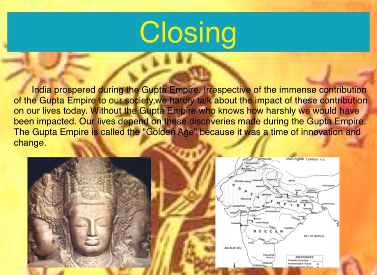 India prospered during the Gupta Empire. Irrespective of the immense contribution of the Gupta Empire to our society,we hardly talk about the impact of these contribution on our lives today. Without the Gupta Empire who knows how harshly we would have been impacted. Our lives depend on these discoveries made during the Gupta Empire. The Gupta Empire is called the "Golden Age" because it was a time of innovation and change.