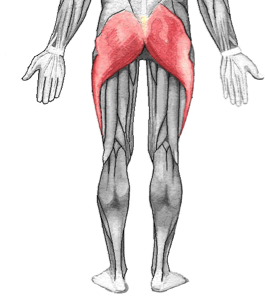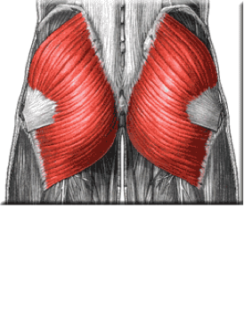 The gluteus maximus muscle is located in the buttocks and is the strongest muscle in the human body. It is connected to the coccyx, as well as other surrounding bones. The gluteus maximus muscle is responsible for movement of the hip and thigh. Rising from a sitting position, climbing stairs, and staying in an erect position are all aided by the gluteus maximus.
