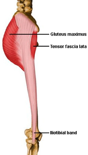 The tensor fasciae latae is a tiny muscle, inferior to the iliotibial band, which is an elongated strip of fascia. This function helps to maintain one foot ahead of the other to facilitate walking. It also provides lateral stability to the knee.