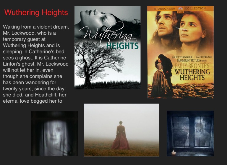 Waking from a violent dream, Mr. Lockwood, who is a temporary guest at Wuthering Heights and is sleeping in Catherine's bed, sees a ghost. It is Catherine Linton's ghost. Mr. Lockwood will not let her in, even though she complains she has been wandering for twenty years, since the day she died, and Heathcliff, her eternal love begged her to haunt him until he died.
