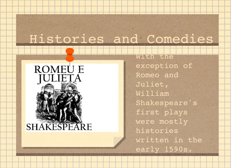 With the exception of Romeo and Juliet, William Shakespeare's first plays were mostly histories written in the early 1590s.