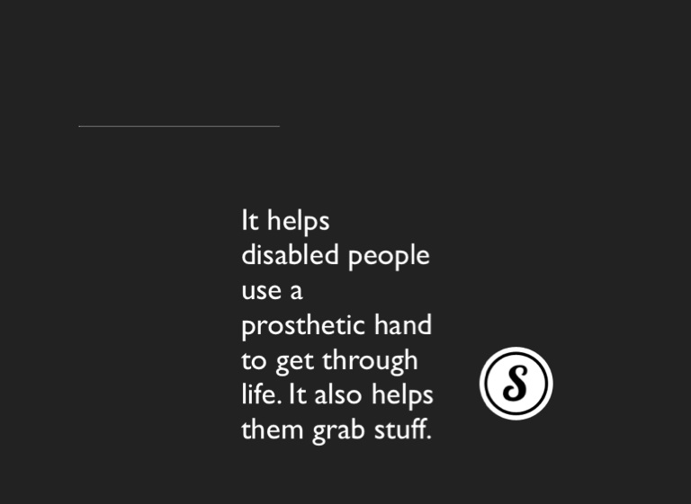 It helps disabled people use a prosthetic hand to get through life. It also helps them grab stuff.