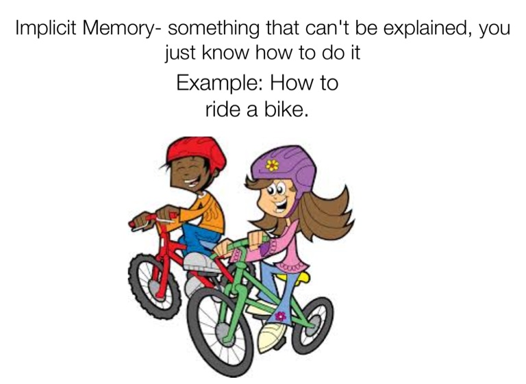 Implicit Memory- something that can't be explained, you just know how to do it
