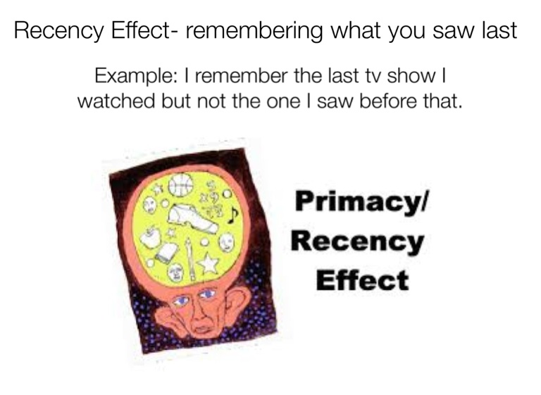 Recency Effect- remembering what you saw last