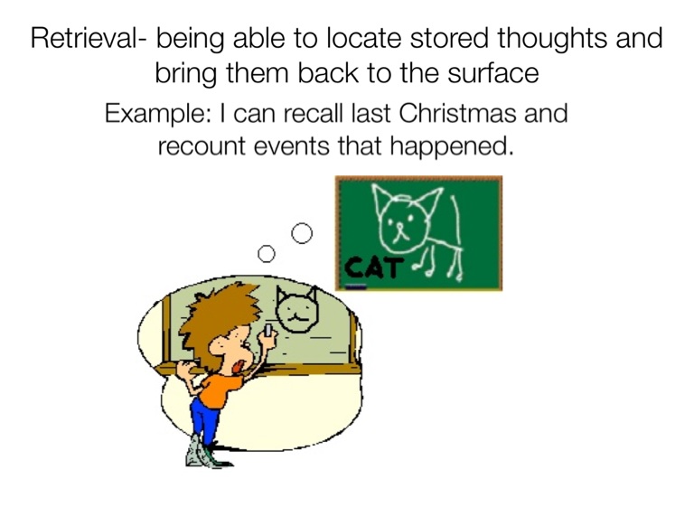 Retrieval- being able to locate stored thoughts and bring them back to the surface