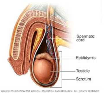 Testicles (testes): These are oval organs about the size of large olives that lie in the scrotum, secured at either end by a structure called the spermatic cord. Most men have two testes. The testes are responsible for making testosterone, the primary male sex hormone, and for generating sperm. Within the testes are coiled masses of tubes called seminiferous tubules. These tubes are responsible for producing sperm cells.