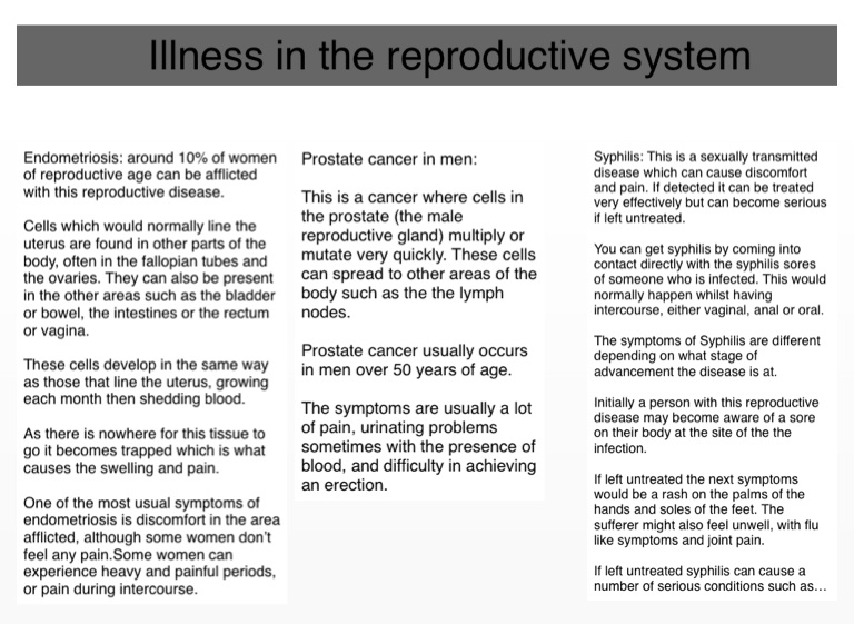 Illness in the reproductive system