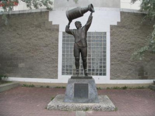 • after the 1988-89 season, a lifesized bronze statue of him outside the Northlands Coliseum, holding the Stanley cup over his head.
