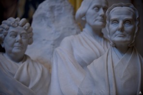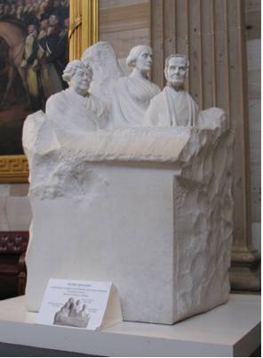 Statue of Lucretia Mott, Susan B. Anthony, Elizabeth Cady Stanton, and an uncarved slab of marvel (rumored to be for the first female president of the United States, represents the end of the Women's Suffrage movement)
