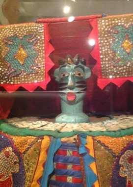 Nigerian masquerade costume late 20th Century. Egungun means, "powers concealed," it is both festival and fear and creates order between our world and the dead. Each Egungun represents a dead ancestor and as it brought out again and again over time it's powers may grow. To become Egungun the performer beneath must lose his own identity. When the spirit is there the performer no longer exists.