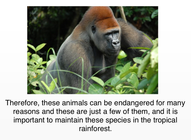 Therefore, these animals can be endangered for many reasons and these are just a few of them, and it is important to maintain these species in the tropical rainforest.