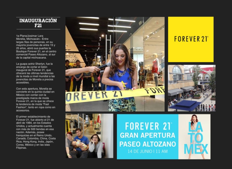 Con esta apertura, Morelia se convierte en la quinta ciudad en México con contar con la prestigiada marca de moda Forever 21, en la que se ofrece la tendencia de moda “Fast Fashion”, tanto en ropa como en accesorios.