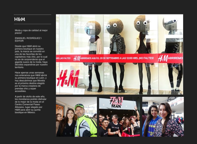 Desde que H&M abrió su primera boutique en nuestro país, la marca se convirtió en una de las favoritas de los capitalinos más chic, por lo cual no es de sorprenderse que el gigante sueco de la moda, haya decidido expandirse por nuestro territorio.