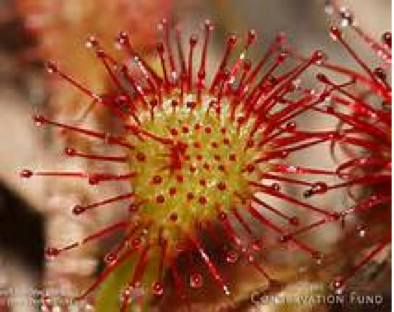 Maintains Homeostasis: the sundew plants maintains homeostasis by changing the color of its leaves and trapping insects in its sticky substance.