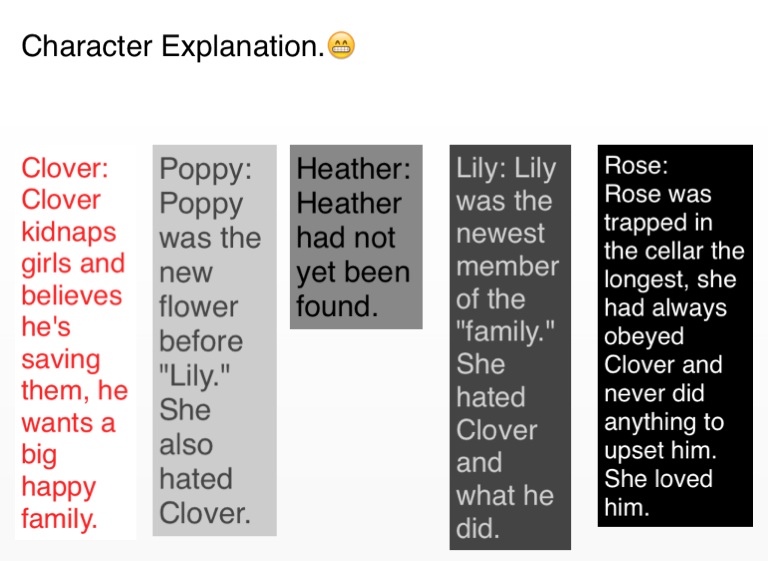 Rose was trapped in the cellar the longest, she had always obeyed Clover and never did anything to upset him. She loved him.