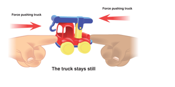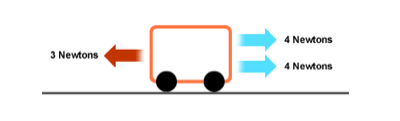Example: There is 4 Newtons being pushed on the left of a box, and 7 Newtons being pushed on the right of the box, having a Net force of 3 Newtons to the right.