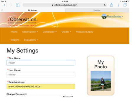 In this area, you can change your password,or upload a photo. (Uploading a photo requires a computer)