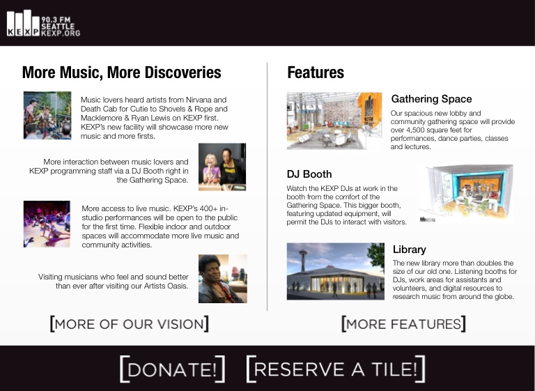 More interaction between music lovers and KEXP programming staff via a DJ Booth right in the Gathering Space.