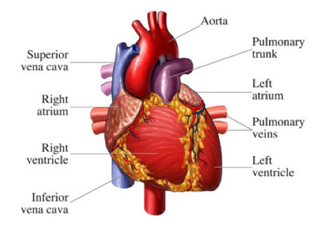 The heart is responsible for pumping blood throughout the body. The heart is made out of cardiac muscle, therefor the heart will never become tired.The heart has four different chambers. There are the two upper chambers which are called the left and right atrium, and the lower chambers, the left and right ventricle.