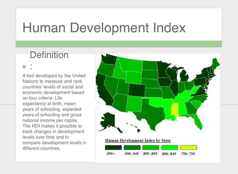 A tool developed by the United Nations to measure and rank countries' levels of social and economic development based on four criteria: Life expectancy at birth, mean years of schooling, expected years of schooling and gross national income per capita. The HDI makes it possible to track changes in development levels over time and to compare development levels in different countries.