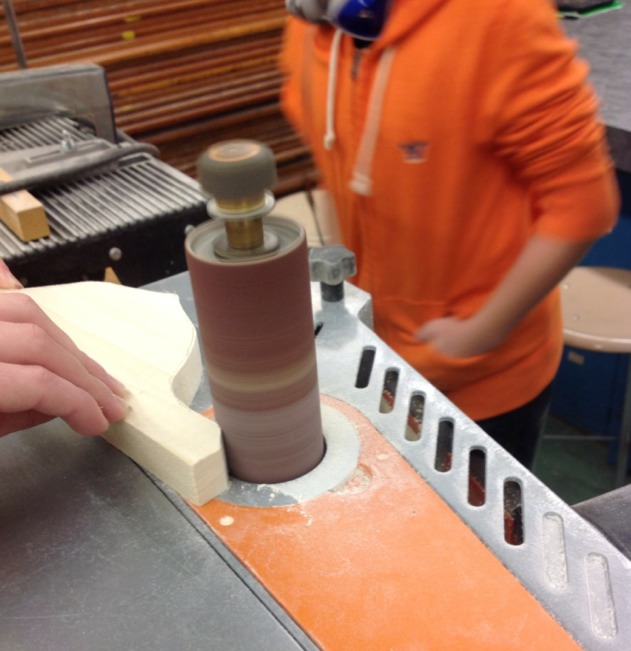 Now you can move onto your crown. Cut a small piece of wood. Make your crown design on a piece of paper cut it out and match up on wood. Make lines and cut down until you get close to your marking and then sand it down until you hit the line. Make sure you take a sander and sand all edges and faces of your crown also use hand sanders. After this stage make sure you use a sander on all your pieces including the crown, face, and both sides.
