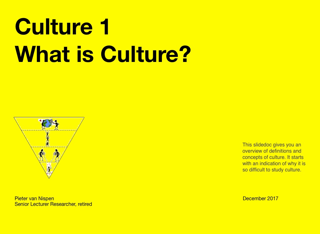This document gives an overview of the relations between culture and small groups, in particular teams and families. In addition, a paragraph on culture and projects has been included.