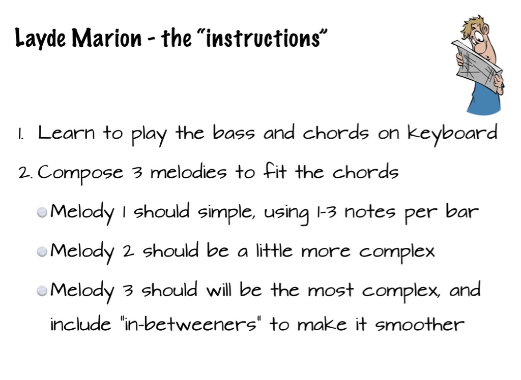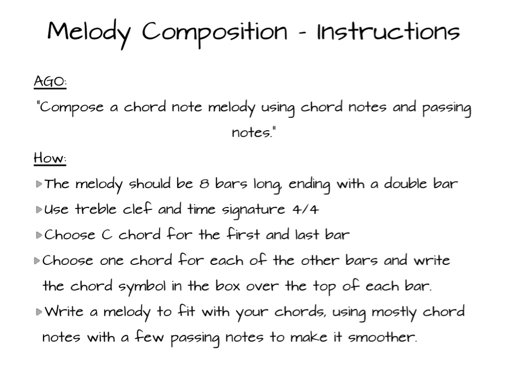Year 8 composition topic, looking at creating melodies to fit an 8 bar chord sequence and ground bass.
