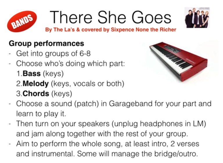 An arrangement of “There She Goes”, for a Year 7 topic called “Keyboard Crazy”. The song was originally by the La’s and covered by Sixpence None the Richer. The transcription/arrangement is my own and intended for academic purposes only.
