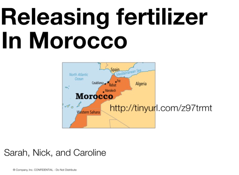 We created a product that will release fertilizer into plant soil in Morocco, to help strengthen the plants to help them grow bigger and faster.