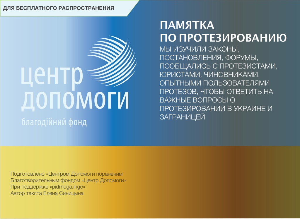 Подготовлено «Центром Допомоги пораненим Благотворительным фондом «Центр Допомоги» При поддержке «pidmoga.ingo» Автор текста Елена Синицына
