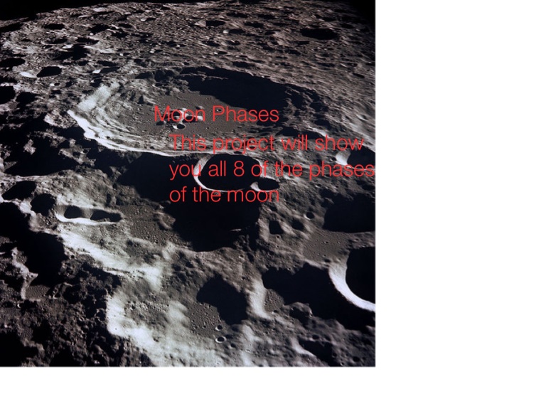 I made this to tell people the 8 phases of the moon and what they look like. So please like what I put on here plz comment me if u like it or u have any ideas.